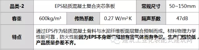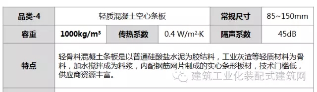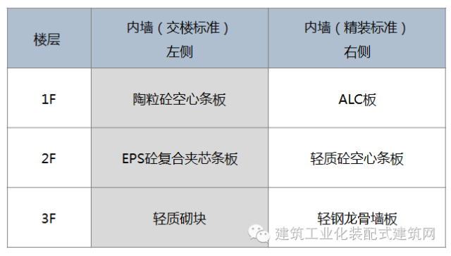 外墻(4種):輕質砌塊、ALC條板、EPS砼復合夾心條板、裝配式輕鋼龍骨灌漿墻體