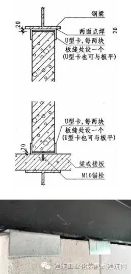 (2)墻板內嵌安裝的直角鋼件節點,不易適應鋼梁的變形,易引起裂縫。