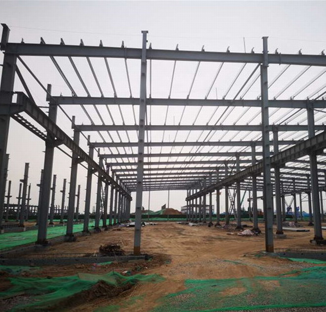 鋼結構廠房在建項目名稱:吉利鋼結構廠房主體與鋼柱的安裝