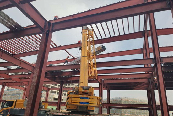 隆基樂葉鋼結構廠房梁安裝與甩料