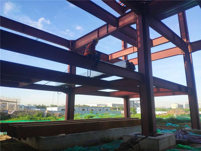 鋼結構廠房在建項目名稱:隆基樂葉鋼結構廠房鋼梁安裝與栓釘焊接