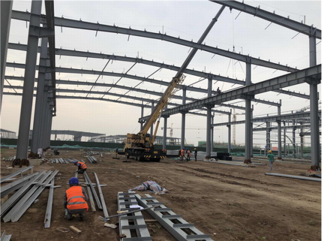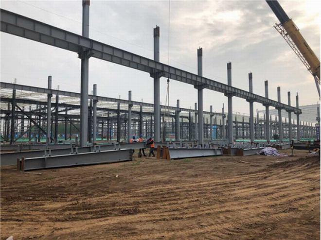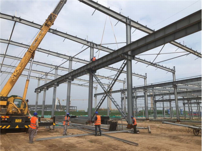 吉利鋼結構廠房梁柱吊裝